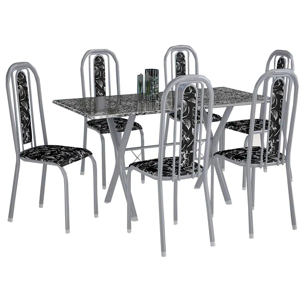 CONJ. MESA FABONE ATHENAS 1.50 C/ 6 CAD. GRANADA 7924 Branco Prata/PTO Floral